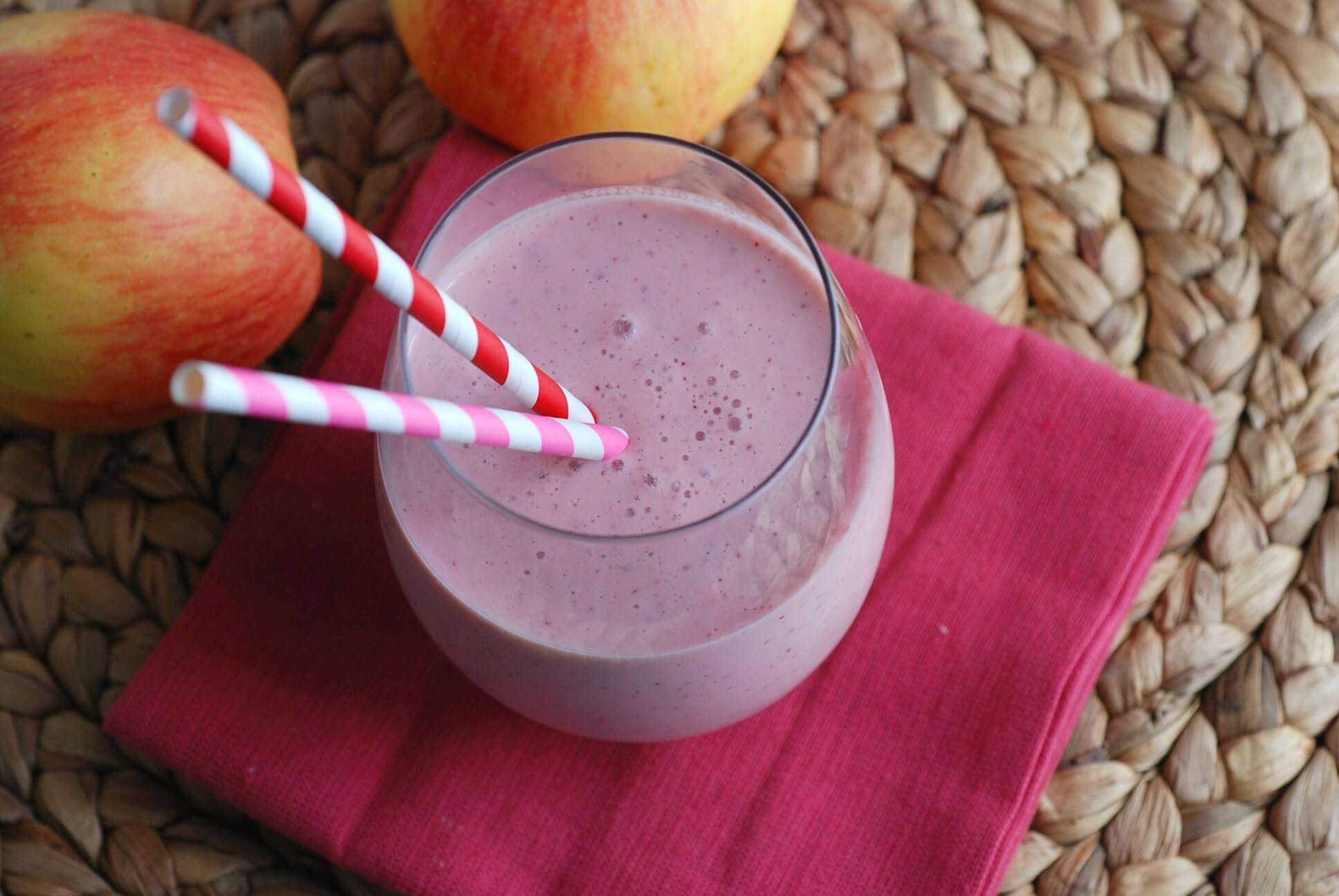 Strawberry-Apple Smoothie (in a blender, combine ¼ cup low-fat vanilla yogurt, ¼ cup non-fat milk, 1 small cored, 1 small chopped apple such as Stemilt Fresh Blenders and ½ cup frozen strawberries) and Banana-Maple Oatmeal (½ cup oats cooked with 1 cup non-fat milk, topped with 2 teaspoons maple syrup and 1 medium banana sliced)