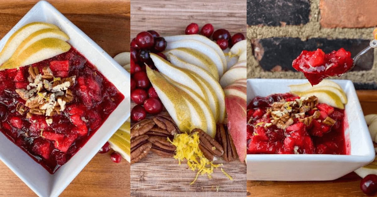 Fresh cranberries have a wonderful sour tartness and crunch that creates an amazing base for this sauce. Sweet Stemilt apples and pears add the perfect balancing complement in terms of both taste and texture, taking this version of the classic sauce to a whole new level. Lemon zest adds a bright, fresh note (without adding more tartness from lemon juice). Chopped pecans, while optional, are a wonderful addition that add crunch and a nutty depth of flavor. Topped off with a bit of ground cinnamon, and this sauce tastes like the holiday season. Check out the recipe and video below!