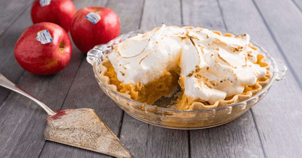 Celebrate St. Patrick's Day with an authentic Irish dish, Apple Amber. Pie crust filled with sweet apple filling and topped with an toasted meringue.