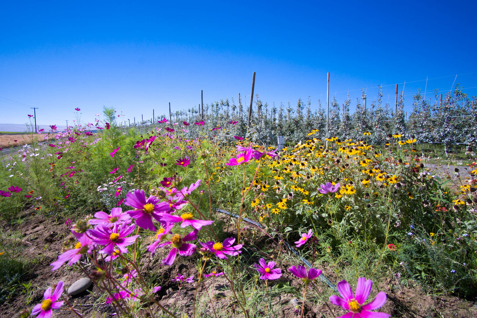 Here at Stemilt, we’re always working towards finding organic ways to manage our orchards. We use my father’s world famous compost to feed the trees natural nutrients, and we use micro irrigation methods to water and feed many trees in order to maximize the delivery of these necessities to our trees. But, did you also know we use wildflowers to help on our organic farms? There are dozens of wildflowers native to Washington State that we use in the field. Many of our organic orchards have beautiful wildflowers lining the edges of apple orchards as a way to attract and harbor beneficial insects to orchards.