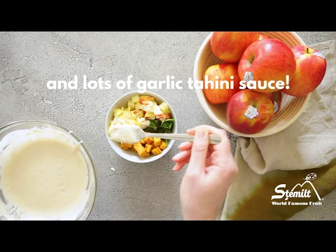 Sweet potatoes and spinach are the star vegetables in this breakfast. I love the combination of sweet potatoes and Stemilt apples, and it’s a pairing we’ve featured here before (like in this chili recipe). There’s just something about that caramelized bite of sweet potato that goes great with the crisp and juicy apple. This bowl brings those flavors together with a scrambled egg, wilted spinach, and the most amazing garlic-tahini sauce! Check out how to make the sauce and this savory breakfast bowl in the video below.